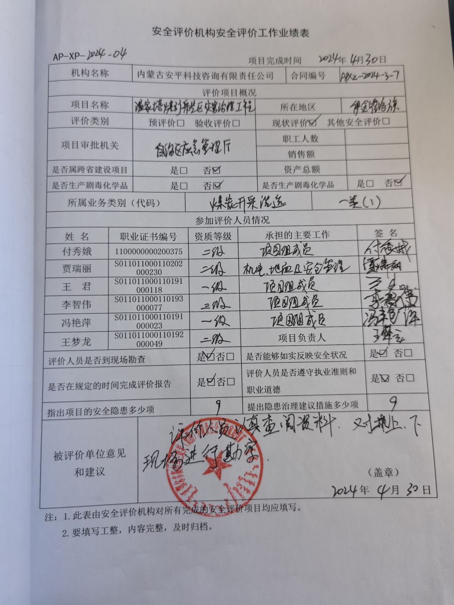 內蒙古安平科技咨詢有限責任公司評價項目網上公開信息表