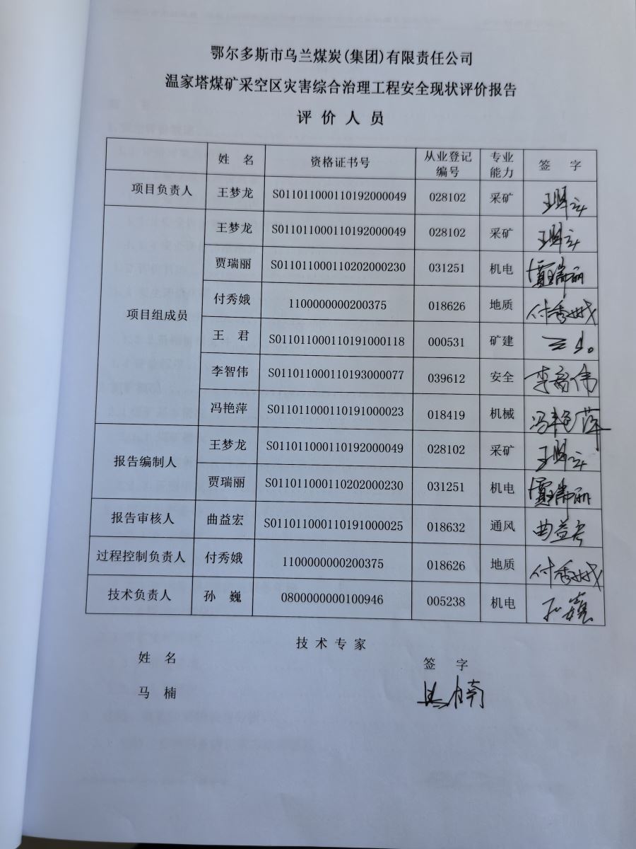 安全現狀評價對象:鄂爾多斯市烏蘭煤炭(集團)有限責任公司溫家塔煤礦采空區災害綜合治理工程