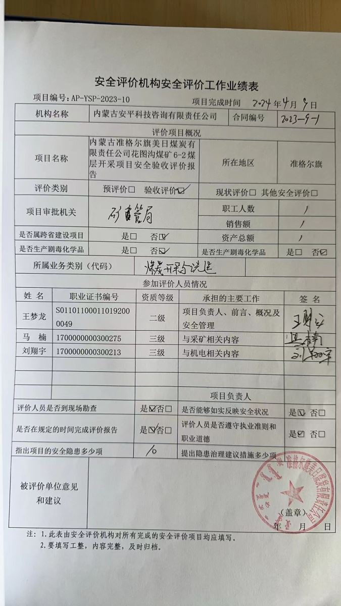 內蒙古安平科技咨詢有限責任公司評價項目網上公開信息表