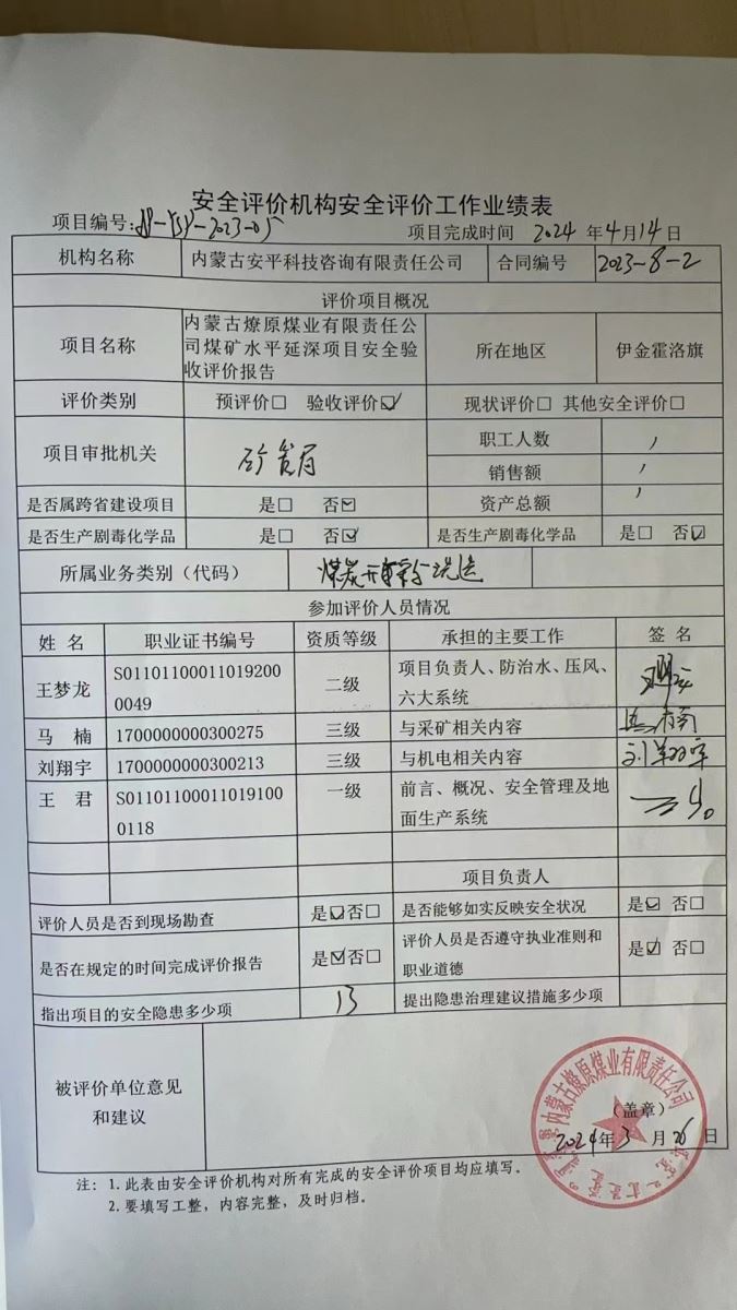 內蒙古安平科技咨詢有限責任公司評價項目網上公開信息表
