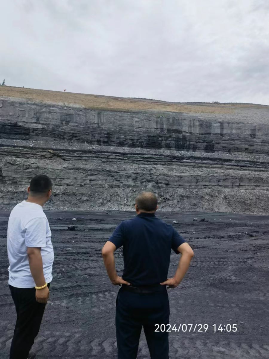 本礦采用端幫半固定坑線多出入溝的開拓方式。本礦共劃分2個采區, 目前正在開采二采區。工作線南北向布置,由東向西推進;目前開采煤層為3號煤層。本礦采場工作幫現已形成13個剝離臺階,臺階高度6-10m;形成1個采煤臺階,臺階高度6m。采場剝離臺階目前已到界,采場暫時不進行剝離作業,待3號煤開采完畢后,3號煤下部的剝離物在工作面裝車后經工作平盤運輸道路至采場南幫運輸道路經地面運輸道路運至首采區北部尾坑進行排棄。采場運煤車輛裝車后經工作平盤運輸道路至采場南幫運輸道路,經內排土場運輸道路至采場南側的儲煤棚內。