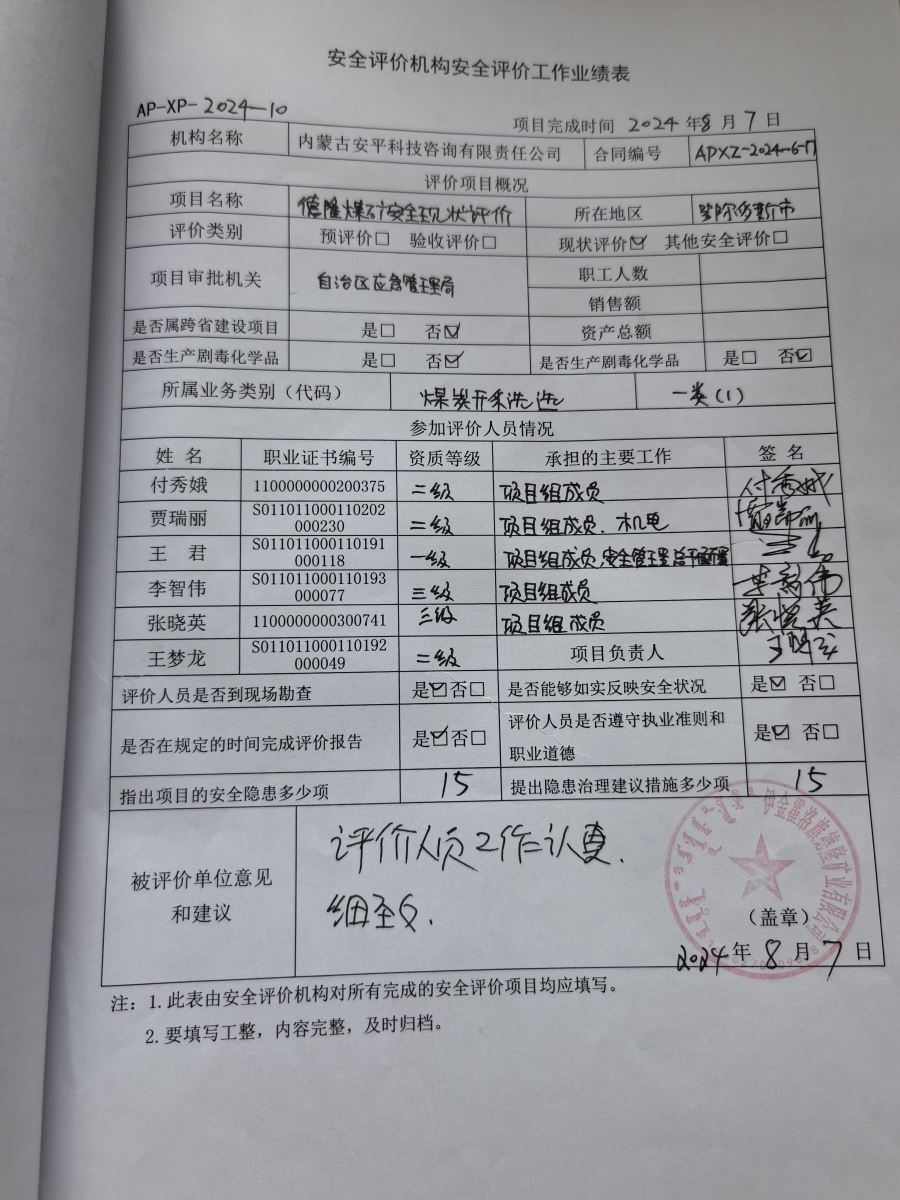 內蒙古安平科技咨詢有限責任公司評價項目網上公開信息表