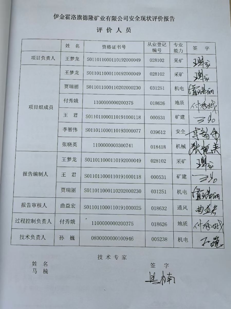 安全現狀評價對象:伊金霍洛旗德隆礦業有限公司